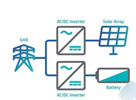 共址部署的交流耦合太陽能+儲能系統:太陽能發電設施和儲能系統位于同一地點,與電網共享一個互連點或具有兩個獨立的互連點。然而,太陽能發電系統和儲能系統各自連接到單獨的逆變器,并且儲能系統儲器位于太陽能發電系統的旁邊。它們可以一起發送或獨立發送電力。